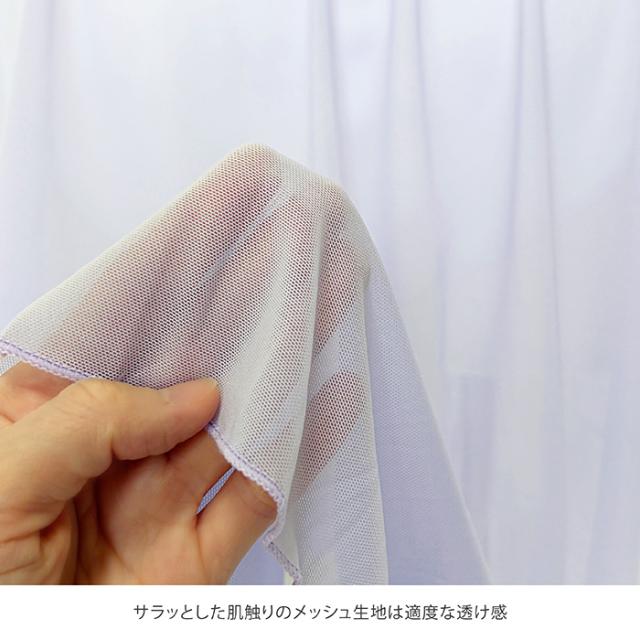 ナイロン主体で耐久性に優れたストレッチ性の高いメッシュを使用しており、サラッとした肌触りのいい生地です。