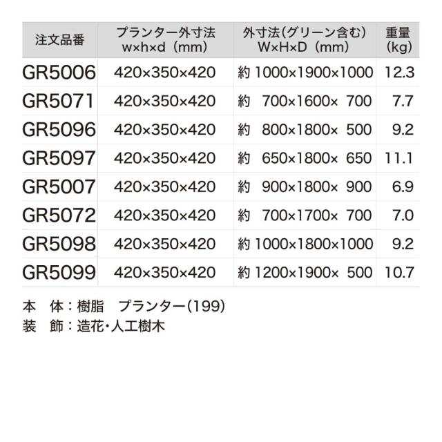※グリーンは造花の為、屋内設置でも直射日光や高温により、変色劣化する場合がございます。