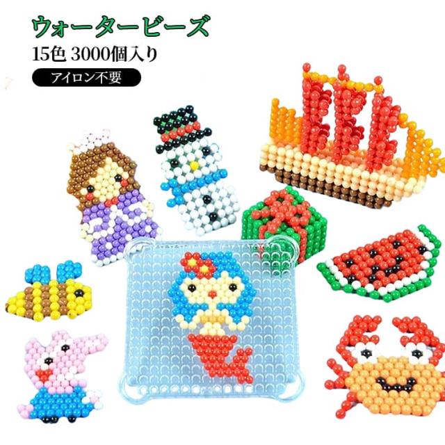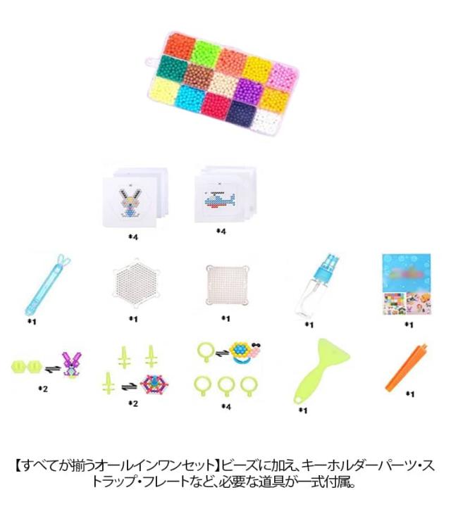 アイロン不要 セット 3000個入り ウォータービーズセット 水で簡単つながる魔法のビーズ 水ビーズ ウォータービーズセット アクセサリー材料キット同梱 届いてすぐ作れる 送料無料 手芸