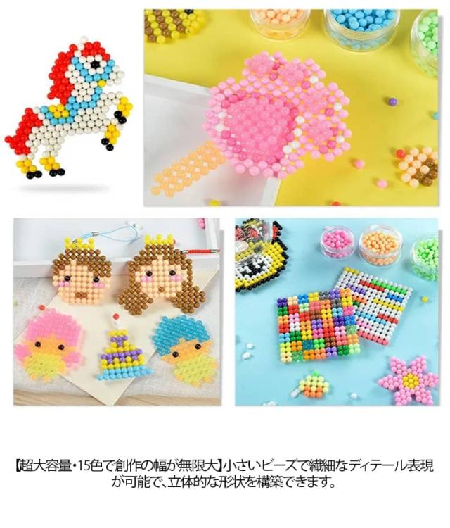 | 【届いてすぐ作れる】アイロン不要!水で簡単つながる魔法のビーズ、届いてすぐ作れる! 【超大容量・15色で創作の幅が無限大】小さいビーズで繊細なディテール表現が可能で、立体的な形状を構築できます。 【すべてが揃うオールインワンセット】ビーズに加え、キーホルダーパーツ・ストラップ・フレートなど、必要な道具が一式付属。 【知育・教育に最適】色彩感覚・創造力・手指の器用さ・集中力を自然に養う、子どもに人気の知育玩具。 【安心の品質と保存性】ビーズはしっかり接着するPE素材。色分けケース付きで整理・保管が簡単。長期使用でも色あせにくい。 | |
