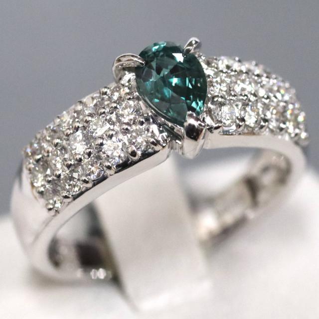 K18WGアレキサンドライトダイヤモンドリング A0.594 D0.55 5.4g #11 ソーティング ホワイトゴールド 11号 天然アレキ