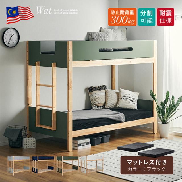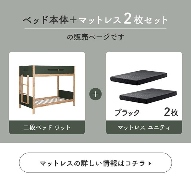 二段ベッド マットレス 大人用 子供 分離 シングルベッド フレーム すのこ マットレス付き 黒 ブラック 2枚セット Wat(ワット)+Unity(ユニティ) 4色対応 2段ベット おしゃれ 木製 敷布団 子供部屋