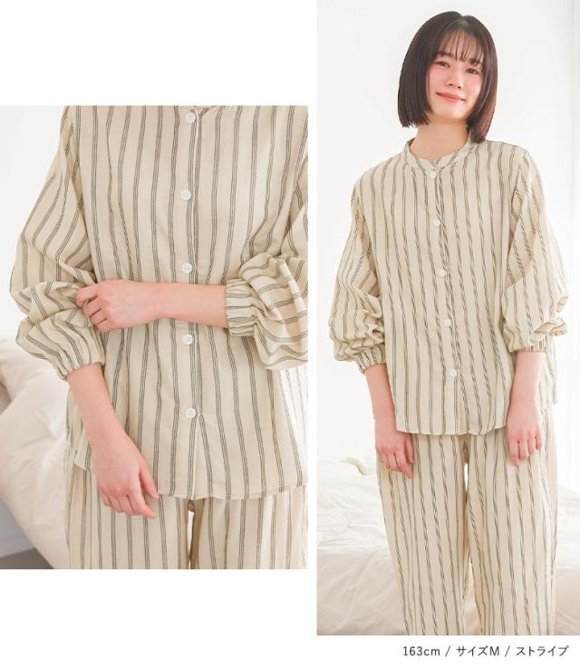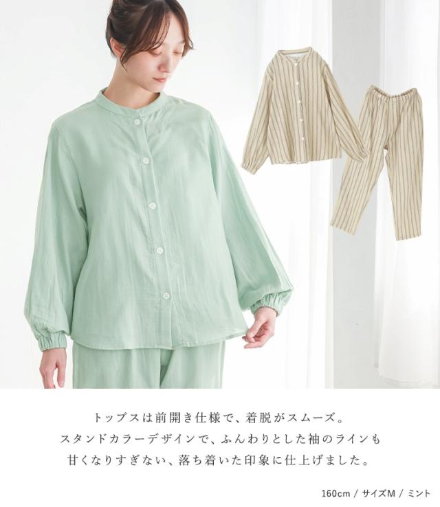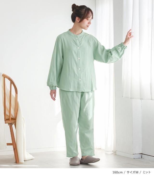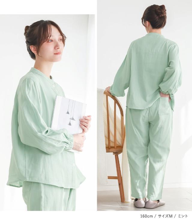 パジャマ 長袖 長ズボン レディース ルームウェア 上下セット 部屋着 保湿 綿100% バルーンスリーブ ロングパンツ 前開きシャツ 春 秋 冬 【TP】 スタンドカラー バルーン袖 ショート丈 ミディ丈 ミドル丈 ロング丈 フルレングス 10分丈 ストライプ柄 総柄 無地 コットン100% おうちで洗える ロングシーズン カジュアル シンプル ナチュラル フェミニン ゆったり ゆる 楽ちん Sサイズ Mサイズ Lサイズ LLサイズ XLサイズ ぽっちゃり 体型カバー 大きいサイズ プラスサイズ 10代 20代 30代 40代 50代 60代 低身長 高身長 osharewalker オシャレウォーカー おしゃれうぉーかー ライフスタイル雑貨 プレゼント 贈り物 ギフト お祝い 引き出物 プチギフト 差し入れ 生活雑貨 引っ越し祝い スリーピングウェア ナイトウェア 乾燥対策 着る保湿クリーム シアバター オリーブオイル シルクアミノ酸 Wガーゼ ガーゼ ガーゼ生地 ガーゼパジャマ おうち時間 寝室 ベッドルーム kiruhoshitsu ベージュ ピンク 桃色 グリーン 緑 ミント[ID]25gp004[長袖前開きバルーンスリーブパジャマ]