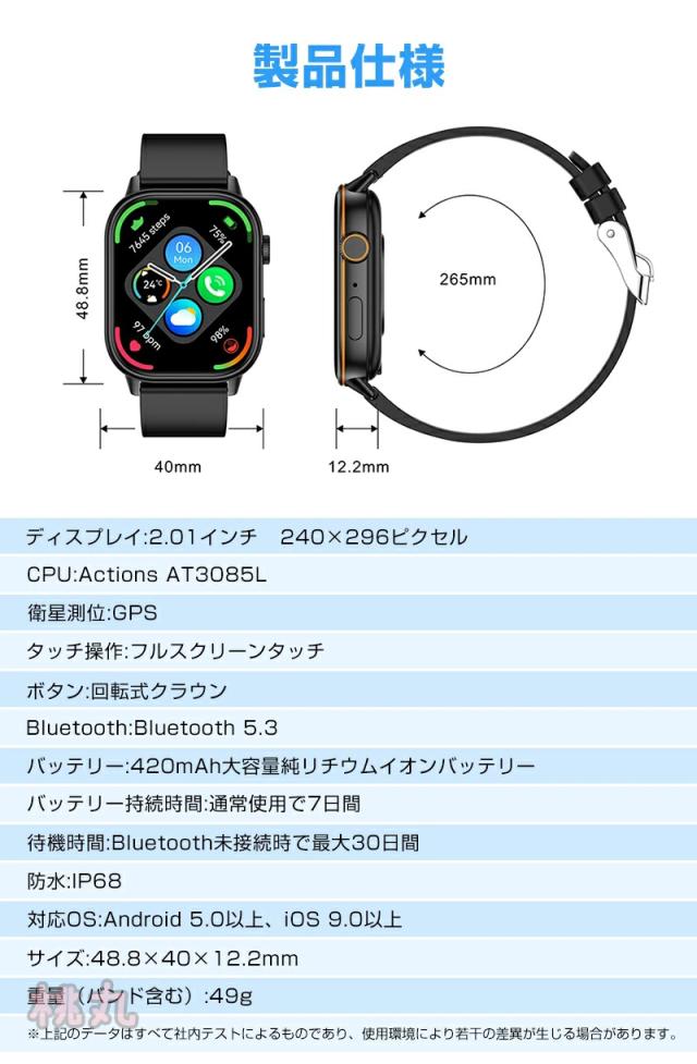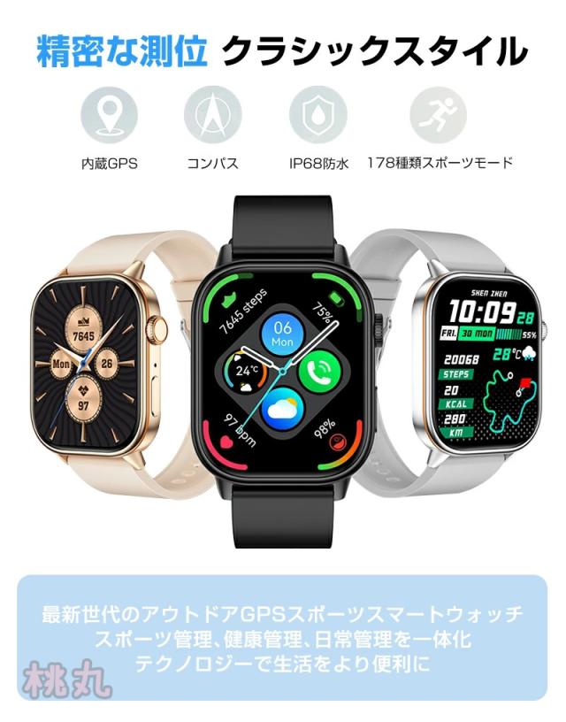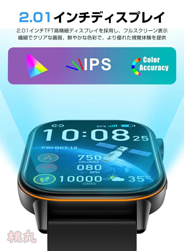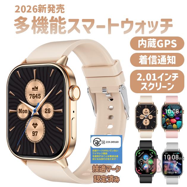 スマートウォッチ 心拍計 血中酸素 2.01インチ大画面 GPS機能 健康管理 睡眠検測 着信通知 睡眠検測 運動モード 歩数計 LINE通知 日本語 IP68防水 アラーム 音楽再生 スポーツ腕時計 男女兼用 多機能 おしゃれ 腕時計 誕生日 プレゼント 彼女 彼氏 2026年新作