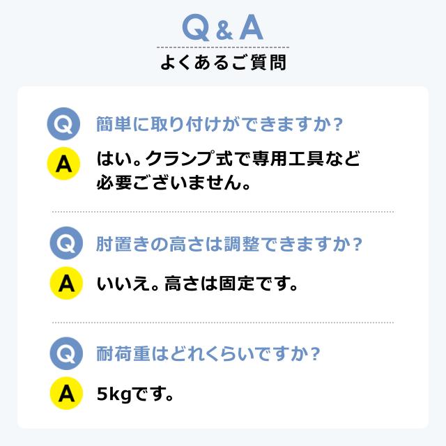 ●天板にクランプでしっかり固定でき、簡単に肘置き台を作ることができる後付のリストレストです。●工具不要で簡単に取り付けられるので、自宅やオフィスでもすぐに使えます。