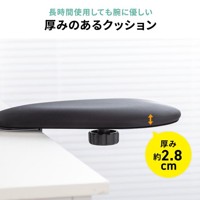 リストレスト 肘置き台 クランプ取付 幅20cm クッション入り エルゴノミクス ブラック[100-TOK009BK]