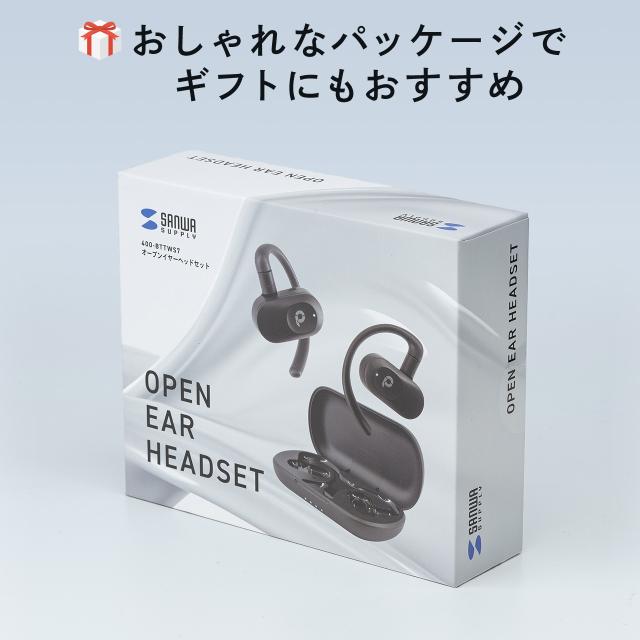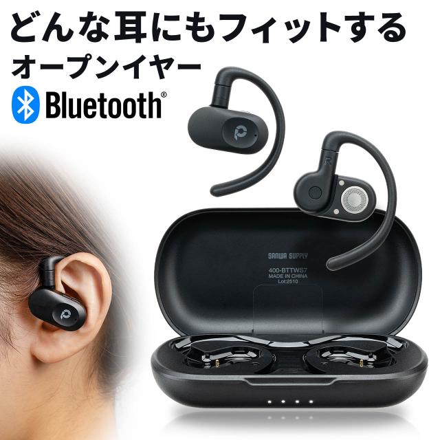 オープンイヤー ワイヤレスイヤホン Bluetooth6.1 耳掛け 上下左右調整 マイク通話 耳を塞がない 音漏れ防止 ながら聴き 最大32時間音楽再生 角度調整 ヘッドセット ブラック[400-BTTWS7]