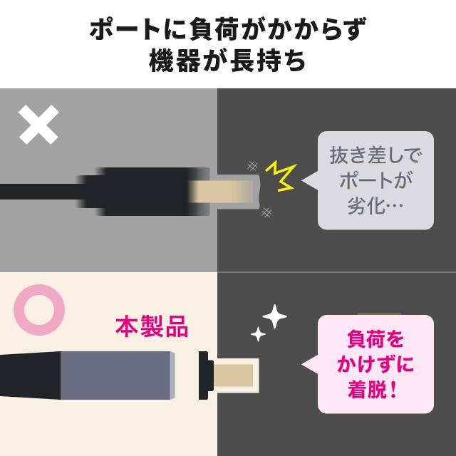 ●マグネット着脱方式なのでケーブルの抜き差しの手間が軽減できます。