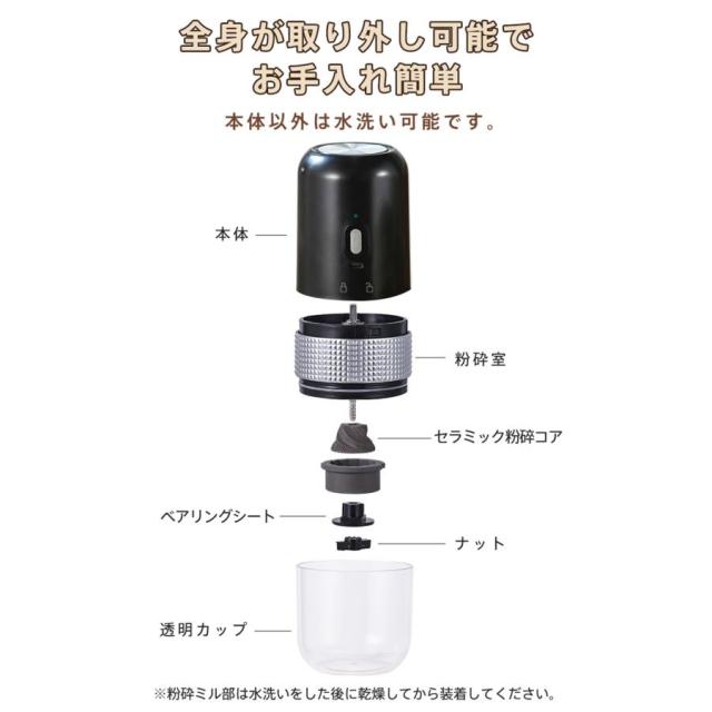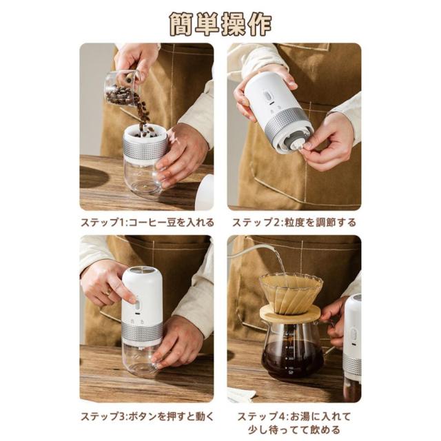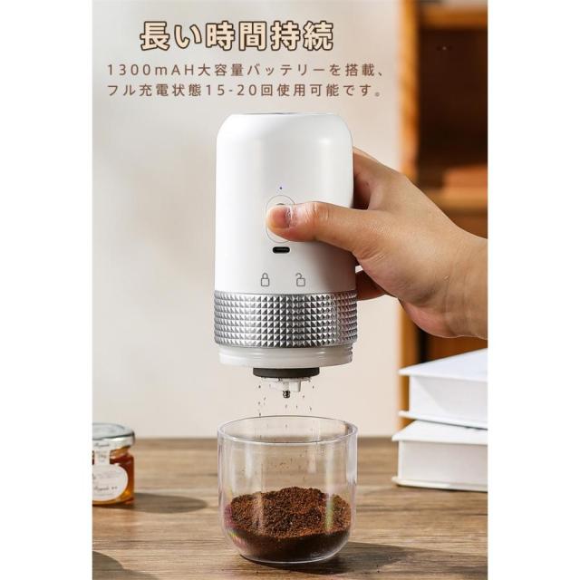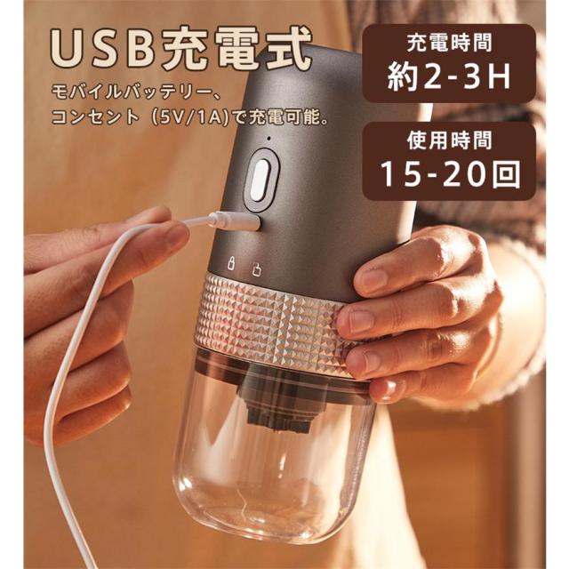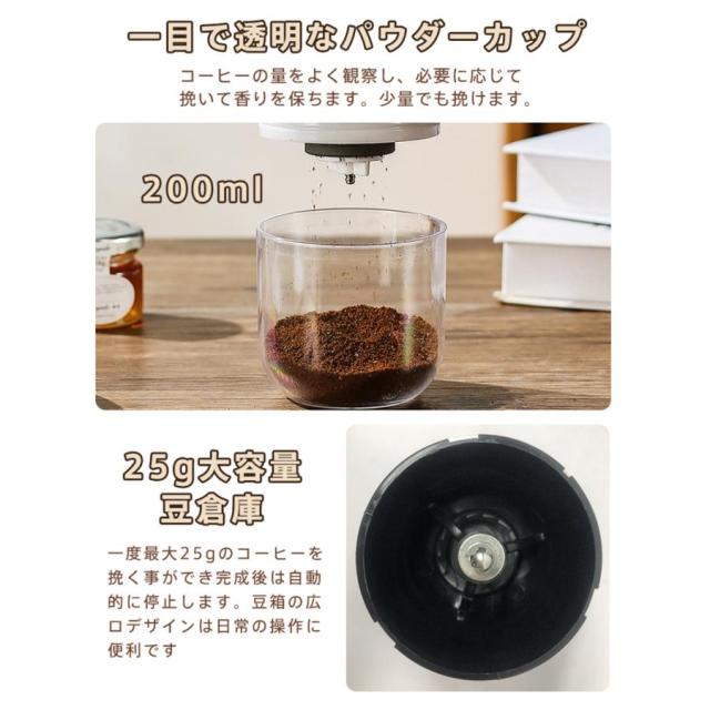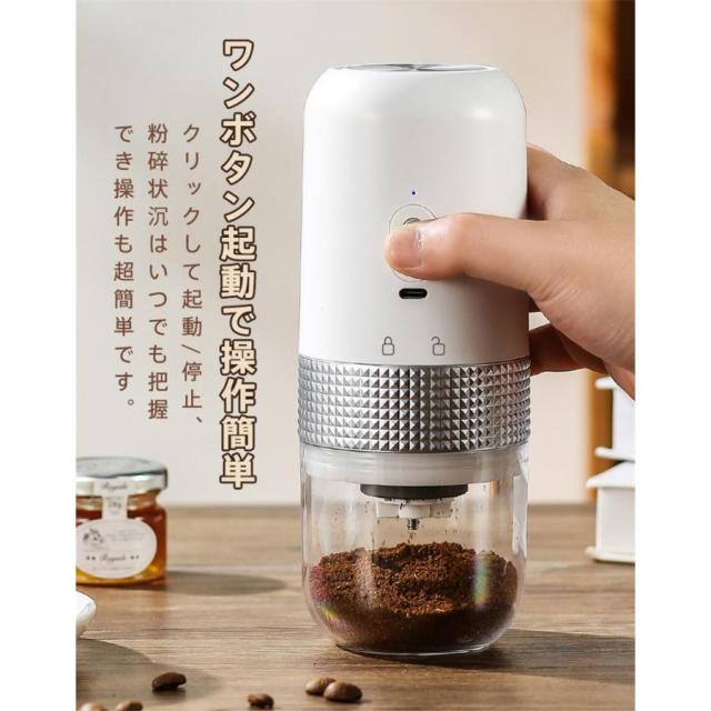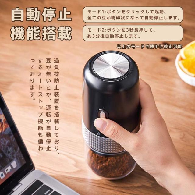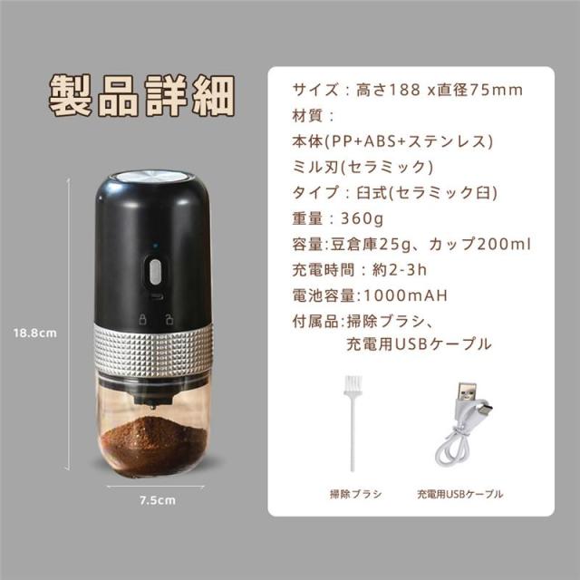 電動コーヒーミル 臼式 USB充電式 コードレス 小型 コーヒーミル 電動 珈琲ミル セラミック刃 自動停止 水洗い可 粗さ調整可 お茶ミル 家庭用