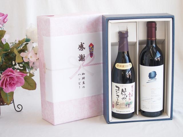 感謝の贈り物ボックス 世界が憧れオーパス・ワンと国産ワインセット(酸化防止剤無添加 信州コンコード赤ワイン 中口(長野県)720mlオーパス ワン 2021赤ワイン カリフォルニアワイン 750ml