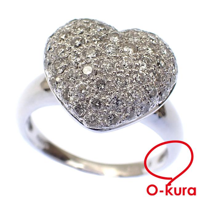 中古 ダイヤモンド ハートモチーフ リング レディース K18WG 13号 1.00ct 5.6g 指輪 750 18金 ホワイトゴールド