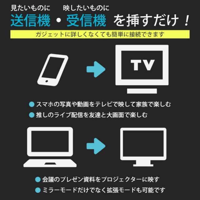【正規販売店】面倒な配線や設定は一切なし!挿すだけでPC画面を大画面にミラーリング。最大50mの安定伝送で、広い会議室でのプレゼンもスマートに。