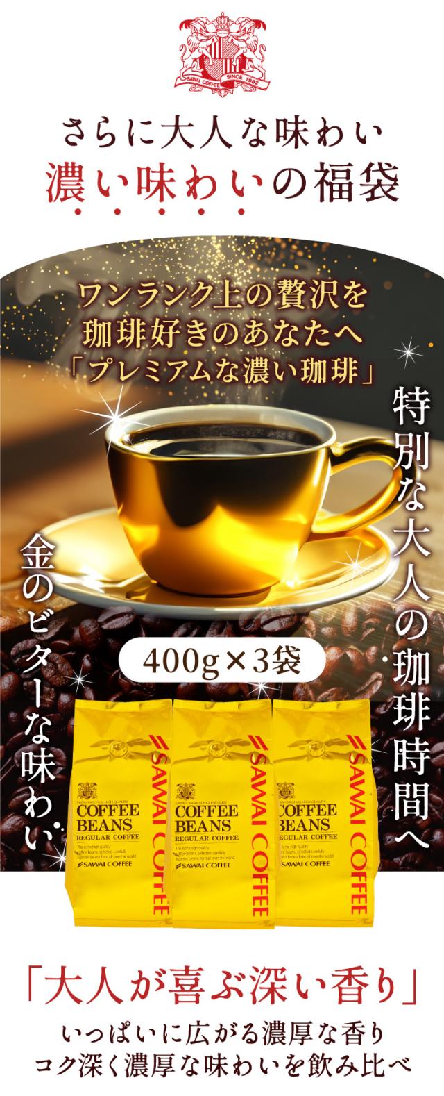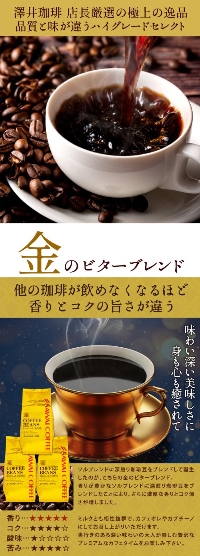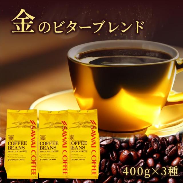 送料無料 コーヒー コーヒー豆 コーヒー粉 珈琲豆 豆のまま "香り高くコク深い時間" 澤井珈琲 金のビターブレンド 1.2kg セット 400g×3袋 香り強い コク深い 濃い味 苦味しっかり 毎日飲める 飽きない 飲みごたえ