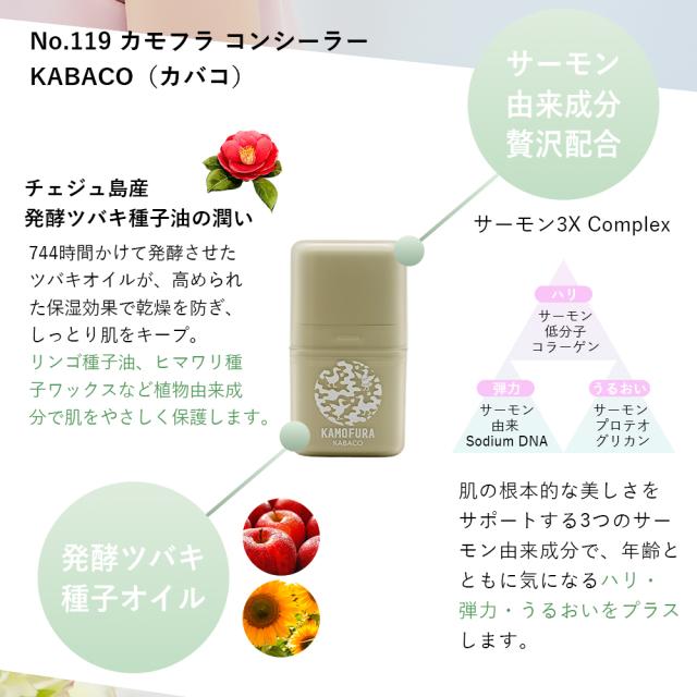 SOIS No.119 カモフラ コンシーラー KABACO(カバコ) サーモン低分子コラーゲン サーモン由来 Sodium DNA サーモン プロテオグリカン 発酵ツバキ種子油 リンゴ種子油 ヒマワリ種子ワックス パラベンフリー ソイズ