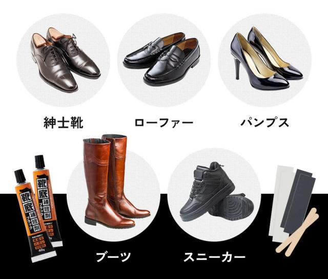 革靴だけでなく、ソールが黒いスニーカーをはじめ、スポーツシューズ・ブーツ・パンプスなど、さまざまな靴の補修にお使いいただけます。