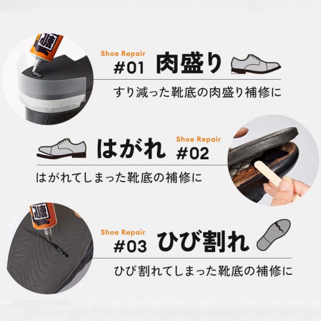 ●靴底のすり減り・ハガレ・ヒビ割れをおうちで簡単に補修できる靴底補修剤です。