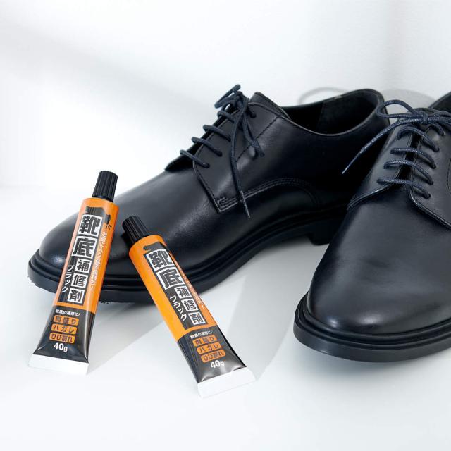 靴 補修剤 靴底 40g×2本 ( 接着剤 修理 補修 黒色 つま先 かかと ソール はがれ ひび割れ すり減り かかと補修 補強 接着 チューブ 細口 お手入れ シューズ 革靴 紳士靴 ローファー 皮革 パンプス ブーツ ヒール スニーカー )