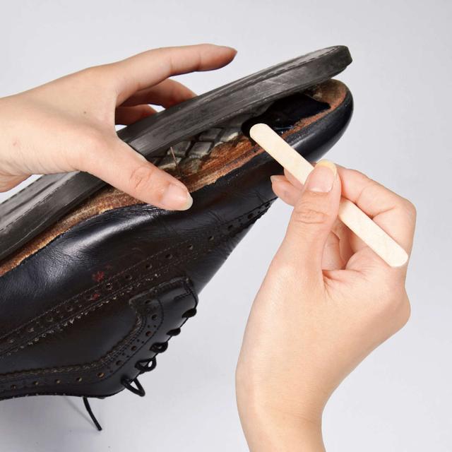 履き続けるうちにすり減ってしまった靴底やかかと部分を、補修剤で肉盛り補修。歩きやすさの回復をサポートし、靴の買い替え頻度を抑えることで節約にもつながります。