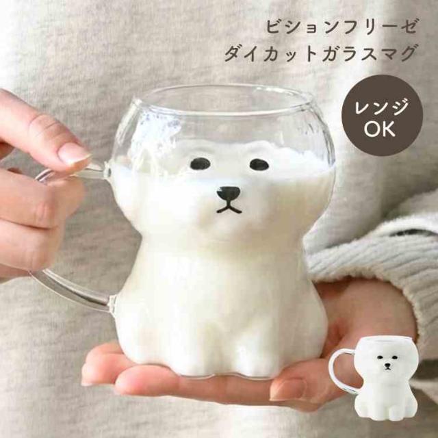 マグカップ ビションフリーゼ ガラスマグ 耐熱 カップ 犬 ダイカットマグ コップ ガラス レンジ 電子レンジ対応 電子レンジOK 食器 かわいい おしゃれ 犬グッズ いぬ キャラクター 癒し アニマル 動物 ティーカップ コーヒーカップ プレゼント ギフト 誕生日 贈り物 雑貨
