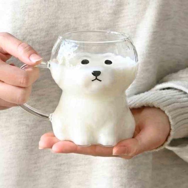 ミルクを注ぐと、ふんわり白いお顔が浮かび上がり、思わず笑顔になる癒しのひとときを演出します♪耐熱ガラス仕様で電子レンジ対応◎持ち手付きで使いやすく、毎日のティータイムやおうちカフェにぴったりです。見た目の可愛さはもちろん、実用性も兼ね備えているので、犬好きさんへのプレゼントやギフトにもおすすめです。