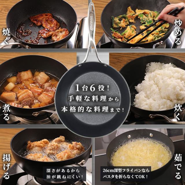 ・26cm深型フライパン:(約)内径26×深さ7.0cm(内底面:約19.5cm)