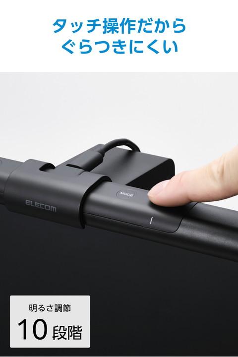 エレコム LEDモニターライト モニター掛け式LEDライト タッチボタン式 明るさ10段階調整 色温度6段階調整 約55〜480lm ブラック ┃DEWML03BK