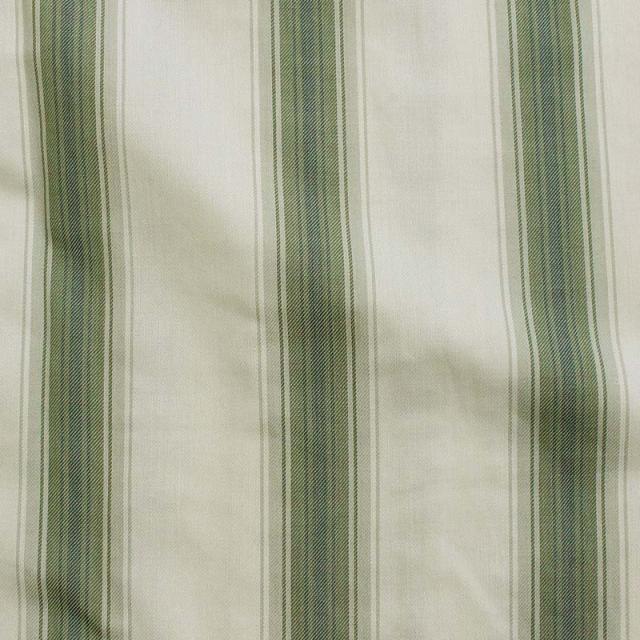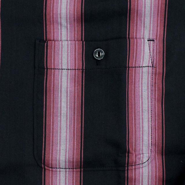 新素材のレーヨン×ポリエステル混合素材を使用した太ピッチストライプシャツ。