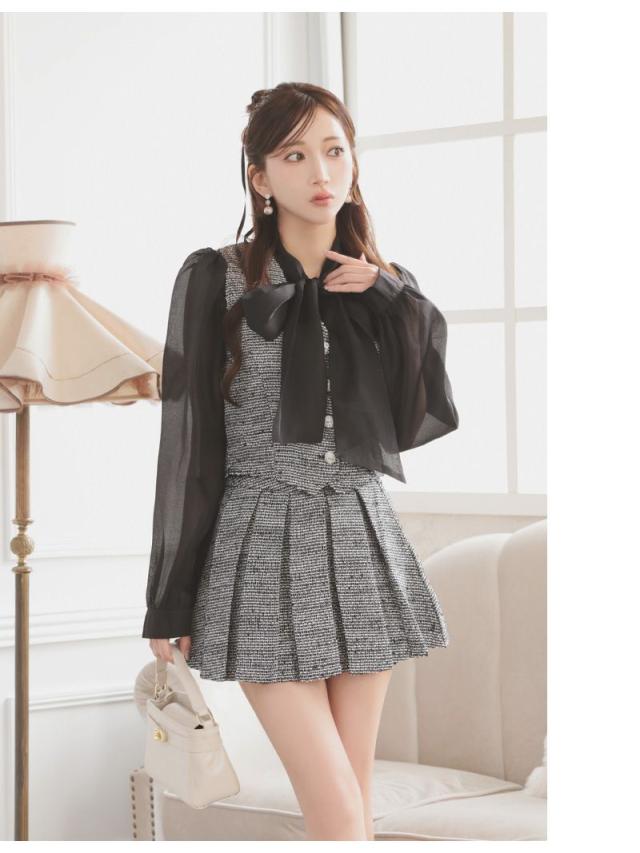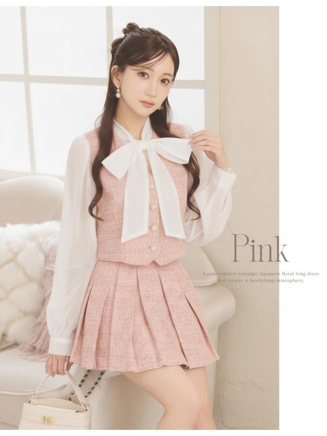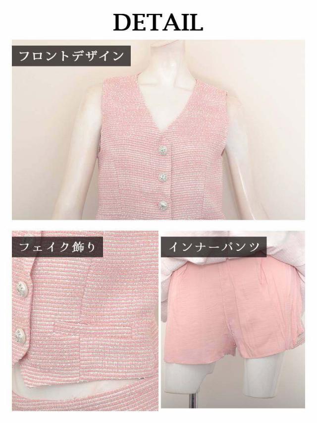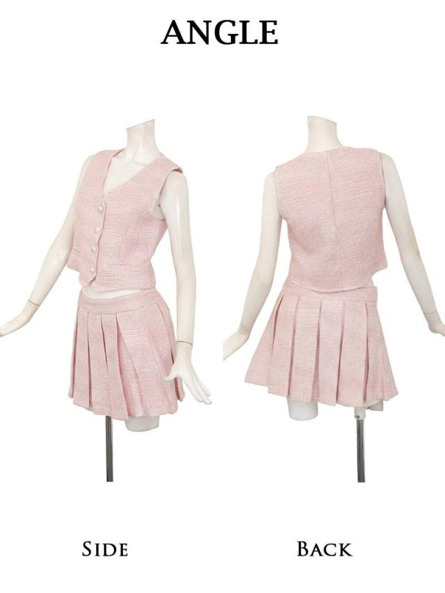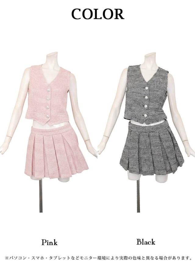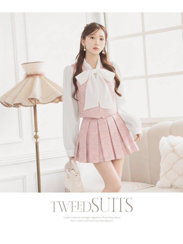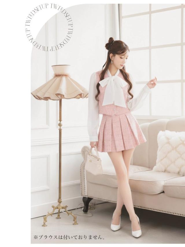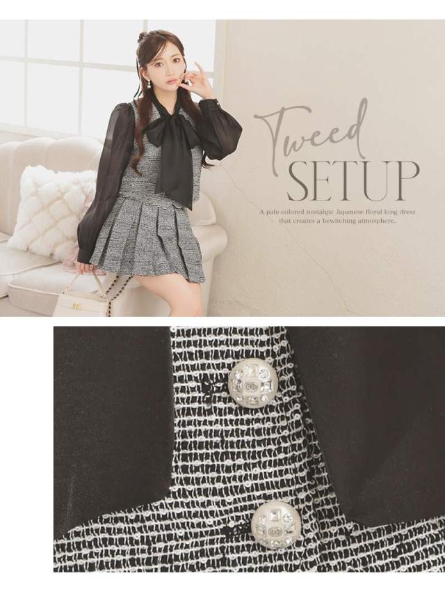 キャバスーツ Ryuyu ミックスツイード インナーパンツ付き ツイードセットアップ ボックスプリーツ キュート キャバ スー