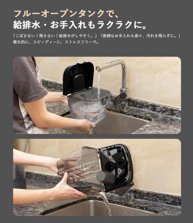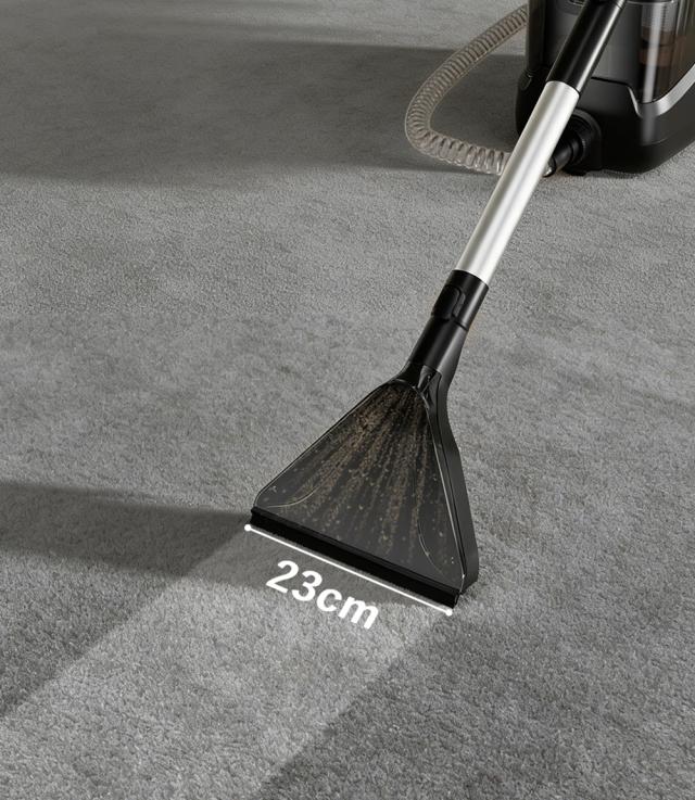2,800mlの給水タンクと1,600mlの排水タンクを搭載しており、頻繁な給排水の手間を大幅に削減します。広いカーペット敷きのエリアでも途中で作業を止める必要がなく、日常のお掃除から業務の大規模清掃まで、この一台でスピーディーに対応できます。