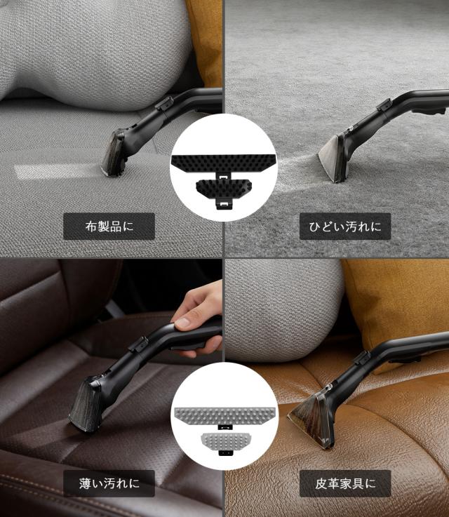 広い絨毯は「カーペットブラシ」で一気に洗浄でき、作業時間を大幅に短縮します。隙間や布張り家具に対応するすきま用、多機能、大型ブラシベッドがあり、家庭の多様な清掃ニーズにも柔軟に応えます。業務でも家庭でも、シーンに合わせて快適に使える充実のセットです。