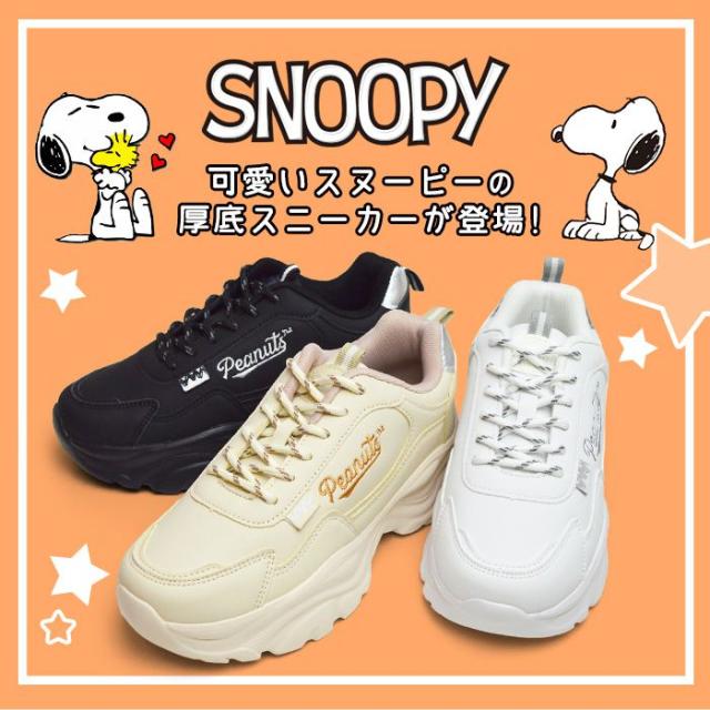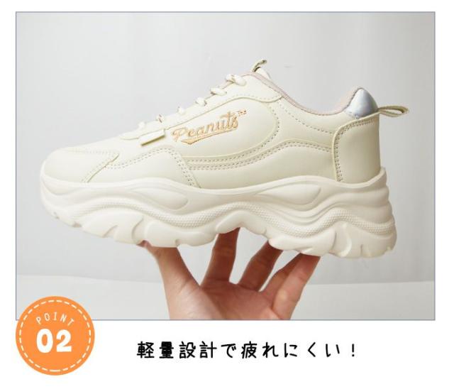 【取り寄せ】スヌーピー スニーカー レディース キッズ PEANUTS ピーナッツ 厚底 シューズ レースアップシューズ 軽量設計 コンフォート ダッドシューズ 靴 SNOOPY レディースニーカー キャラクター 女性用/2026新作 秋冬 トレンド