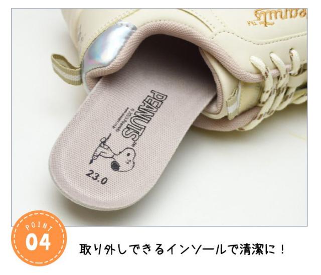 大人気のキャラクター【スヌーピー】のレディース厚底スニーカーが登場!クッション性の高い厚底ソールに、かわいいスヌーピーのイラストが!インソールは取り外し可能でいつでも清潔に!シンプルなのでどんなコーディネートにも合わせやすく、プレゼントなどにも最適な1足です。