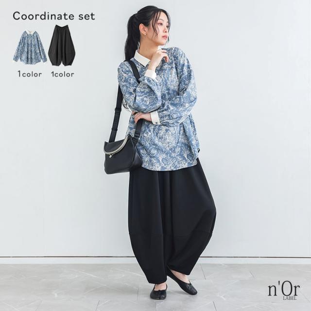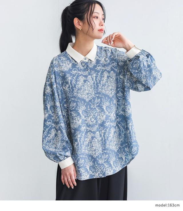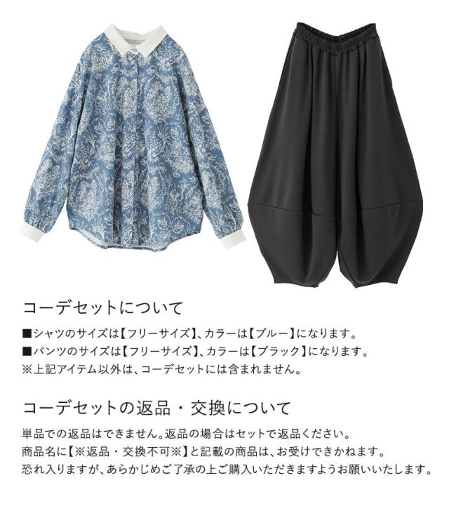 1,000円オフ4日0時迄 『トワルドジュイ柄シャツ×ポンチコクーンパンツコーデ2点SET』【メール便不可】【30】[2点コーデセット 2026 レディース シャツ 長袖 トップス ブラウス トワルドジュイ柄 コクーンパンツ ロング ボトムス]