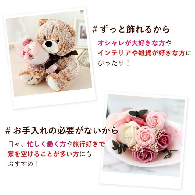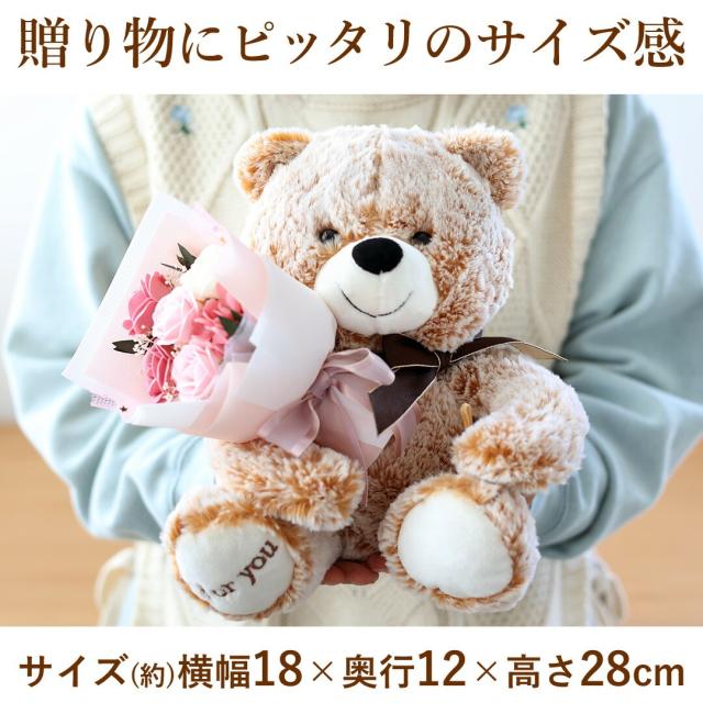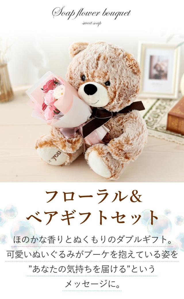 翌日配達 花 ソープフラワー 花束 ベア ブーケ ぬいぐるみ 「フローラル&ベアギフトセット」 プリザ 誕生日 プレゼント 女性 ギフト おしゃれ 可愛い お誕生日 シャボンフラワー 結婚祝い 退職祝い 開店祝い 卒業 式 卒園 高校生 先生 母の日