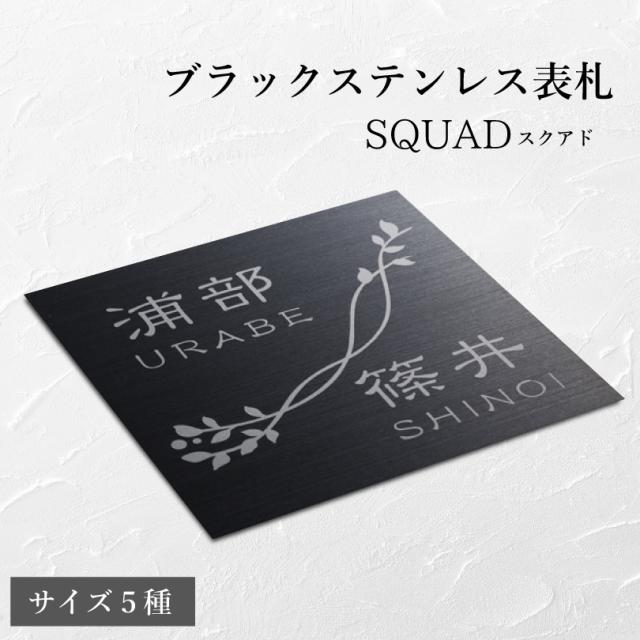 ブラックステンレス表札 SQUAD スクアド サイズ5種類 / ドライエッチング仕様 戸建て おしゃれ マンション 門柱 二世帯 正方形 長方形 新築祝い シンプル 高級感 シック かっこいい 玄関表札 建物入口hyosatsu-squad-b