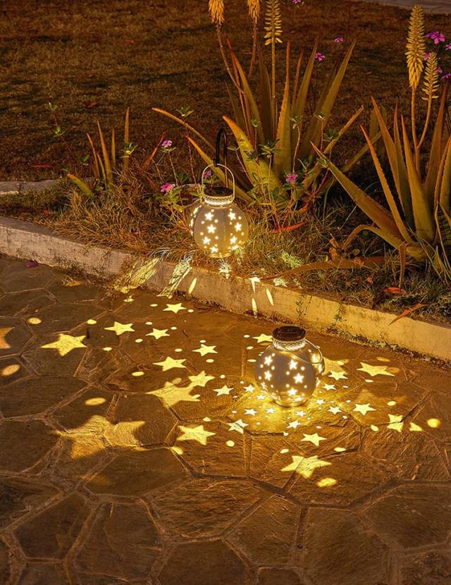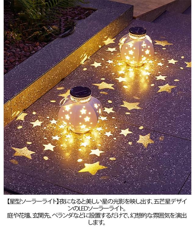 ソーラー 花園 スター ガーデンライト ライト 屋外用 ランタン LED 防水 五芒星デザイン ナイトライト 光影演出 自動点灯 ガーデンライト ガーデンライト 芝生ライト イルミネーション 吊り下げ 置き型対応