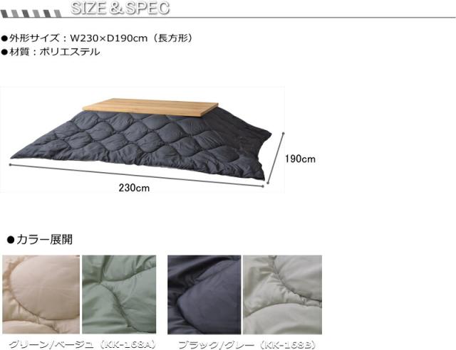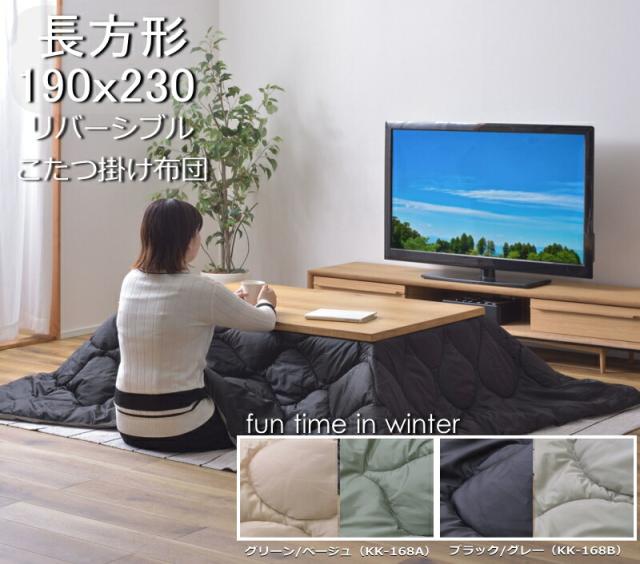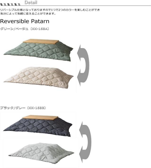 リバーシブル 撥水 こたつ布団 長方形 190x230cm KK-168 防寒 シンプル おしゃれ 収納バッグ付き キャンプ アウトドア 持ち運び グリーン/ベージュ ブラック/グレー