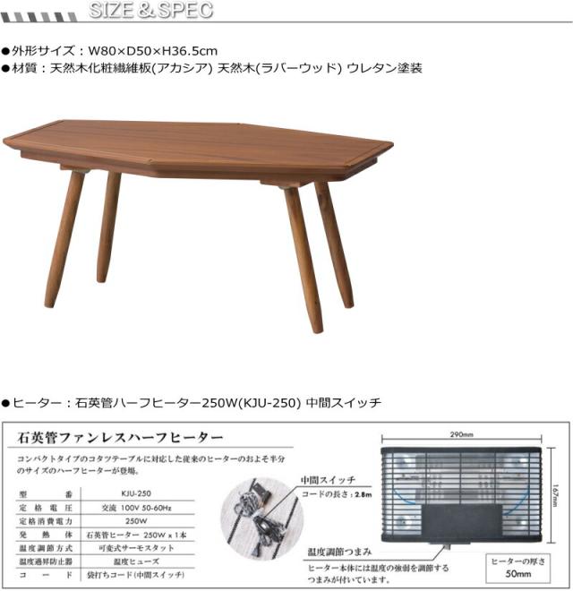パーソナルこたつテーブル 六角形 80x50cm ヘキサゴン80 KT-213 1人用 ミニこたつ コタツテーブル センターテーブル ミニ コンパクト 一人使い オールシーズン ハーフヒーター 天然木 アカシア