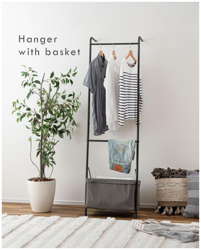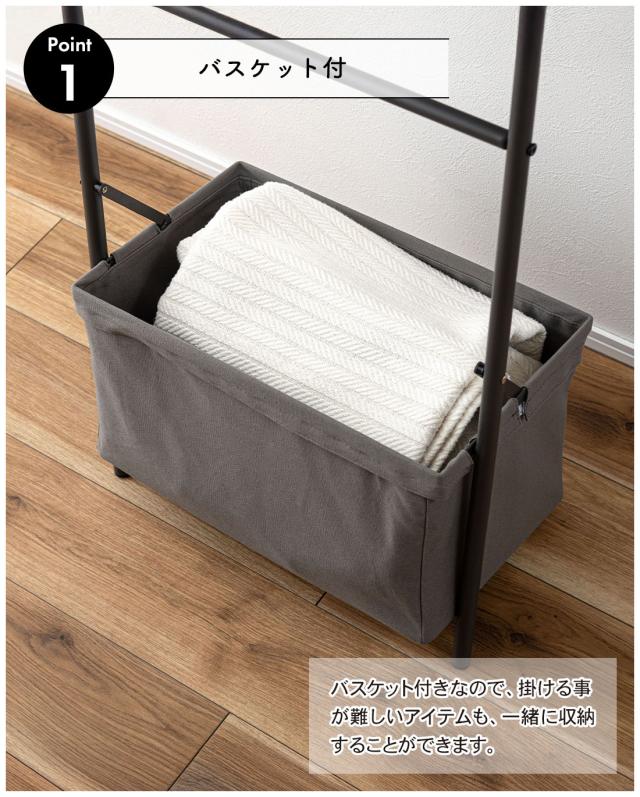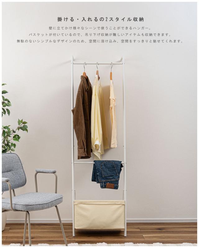 バスケット付きハンガー ポールハンガー ハンガー 立てかけハンガー ウォールハンガー スタンドハンガー 収納 バスケット付き バスケット 立てかけ 壁面収納 洋服掛け 部屋干し