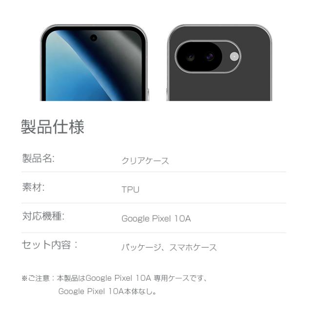Google Pixel 10A スマホ保護ケース グーグル ピクセル テン エー スマホケース ソフトケース 衝撃吸収 高透明感 疎油 撥水 耐摩擦 超薄型 軽量 滑り止め 透明ケース 柔らかい 高めエッジ設計 液晶保護 スクラッチ防止 高弾性 密着痕防止 脱着簡単 ストラップホール付き