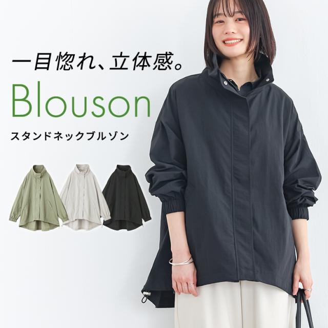 <春新作>『スタンドロングブルゾン』【メール便不可】【30】[ブルゾン レディース アウターウェア ライトアウター ライトブルゾン ジャケット スタンドネック 羽織り 長袖 春 秋 オシャレウォーカー]