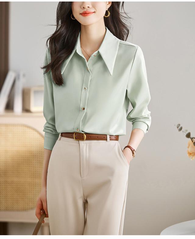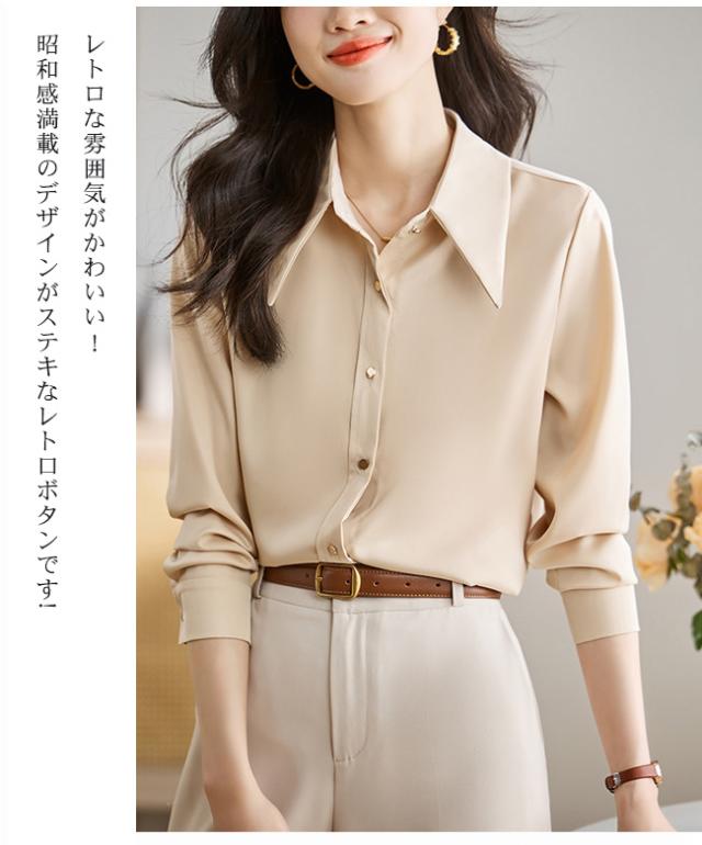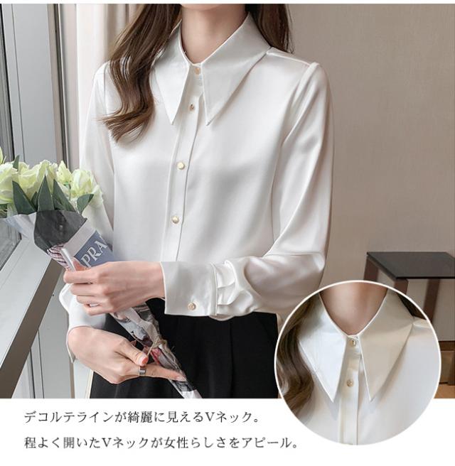 ブラウス オフィス 長袖 レディース とろみ シャツブラウス トップス スーツ インナー シャツ 襟付き 前開き きれいめ ゆったり かわいい 上品 就活 面接 フォーマル ビジネス 通勤 20代 30代 40代 50代