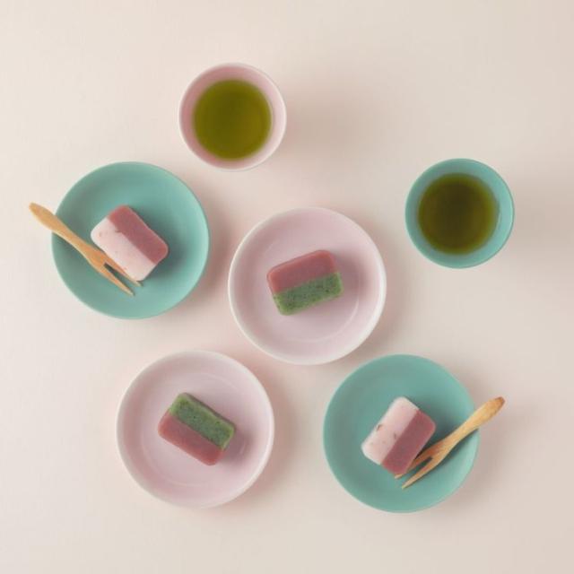 うららかな光に包まれた心地よいひとときに。桜葉香る桜ういろとないろ(白ういろに、こし餡を加えて蒸したもの)の2層仕立ての「さくら餅」、風味豊かな蓬ういろとないろの2層仕立ての「よもぎ餅」をもっちりと蒸しあげました。