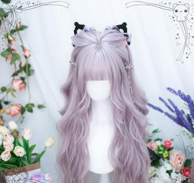 フルウィッグ ロング ウェーブ ラベンダー パープル 耐熱 自然 可愛い 小顔効果 レディース コスプレ ハロウィン パーティー 姫系