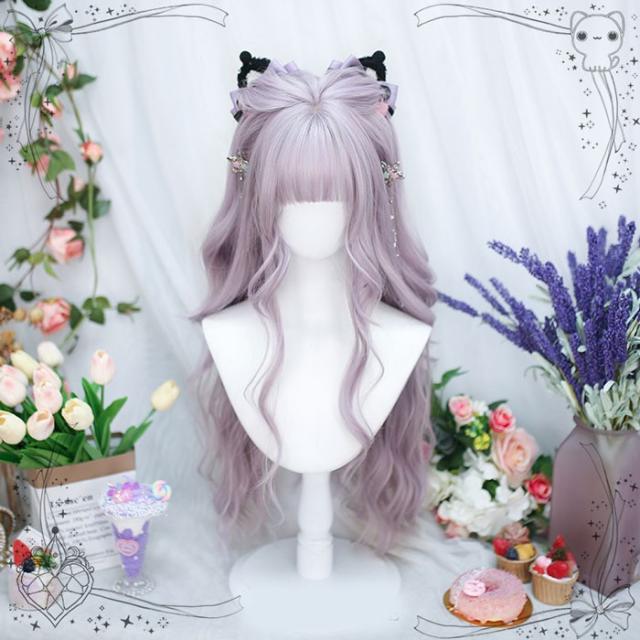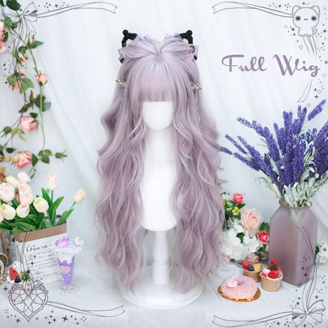 フルウィッグ ロング ウェーブ ラベンダー パープル 耐熱 自然 可愛い 小顔効果 レディース コスプレ ハロウィン パーティー 姫系 dp400c0X7