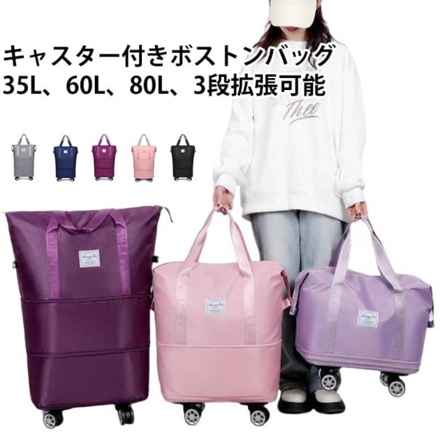 キャリーバッグ ボストンバッグ トートバッグ 機内持ち込み 35L 折りたたみ 拡張 ボストンバッグ 60L レディース メンズ 旅行バッグ 4輪 軽量 大容量 キャスター付き ソフト ファスナー 防水 撥水加工 シンプル 旅行