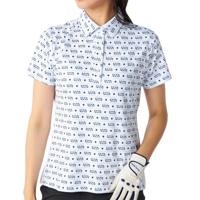 [50%OFF] ゴルフウェア マリクレール レディース モノグラム柄 配色切替 半袖 ポロシャツ 715-652 ブルー [2025年春夏モデル] 特価