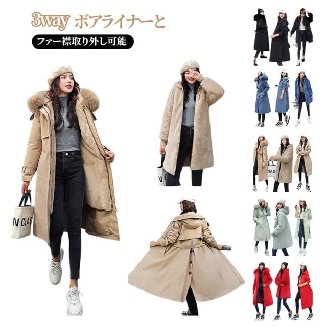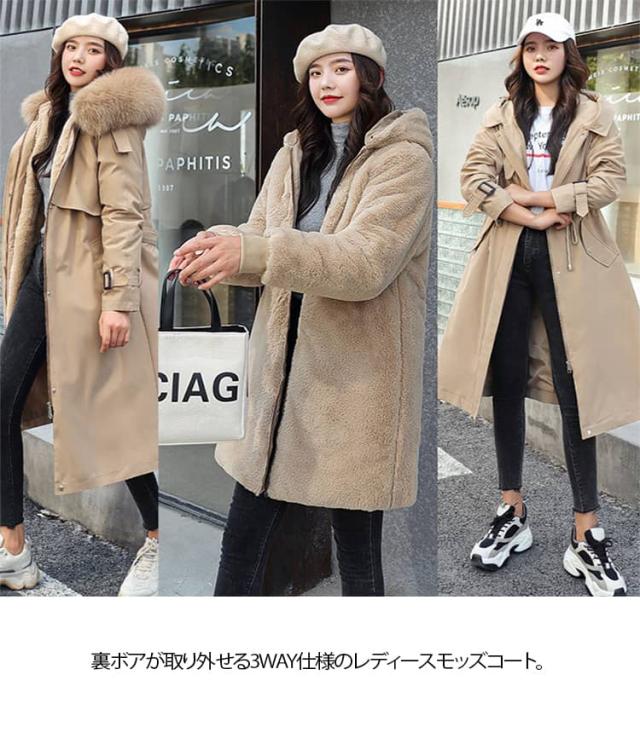 3way ボアコート M レディース モッズコート ライナー付き レディース ロングコート おしゃれ 裏ボア 3way 大きいサイズ 3wayコート フェイクファー ウエスト紐 おしゃれ 暖かい 春秋冬 モッズコート L XL 2XL 3XL 4XL