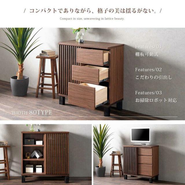 サイドボード キャビネット 80cm リビング 収納 収納家具 サイドチェスト リビングボード 収納棚 扉 飾り棚 引出し 間仕切り 木目調 木製 おしゃれ ナチュラル ブラウン モダン