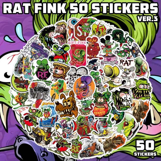 ラットフィンク ステッカー 50枚セット Ver.3 PVC 防水 シール Rat Fink ネズミ ヴィンテージ クラッシュカーレース バイク スーツケース